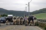 we stoppen omdat een kudde koeien naar een andere weide wordt